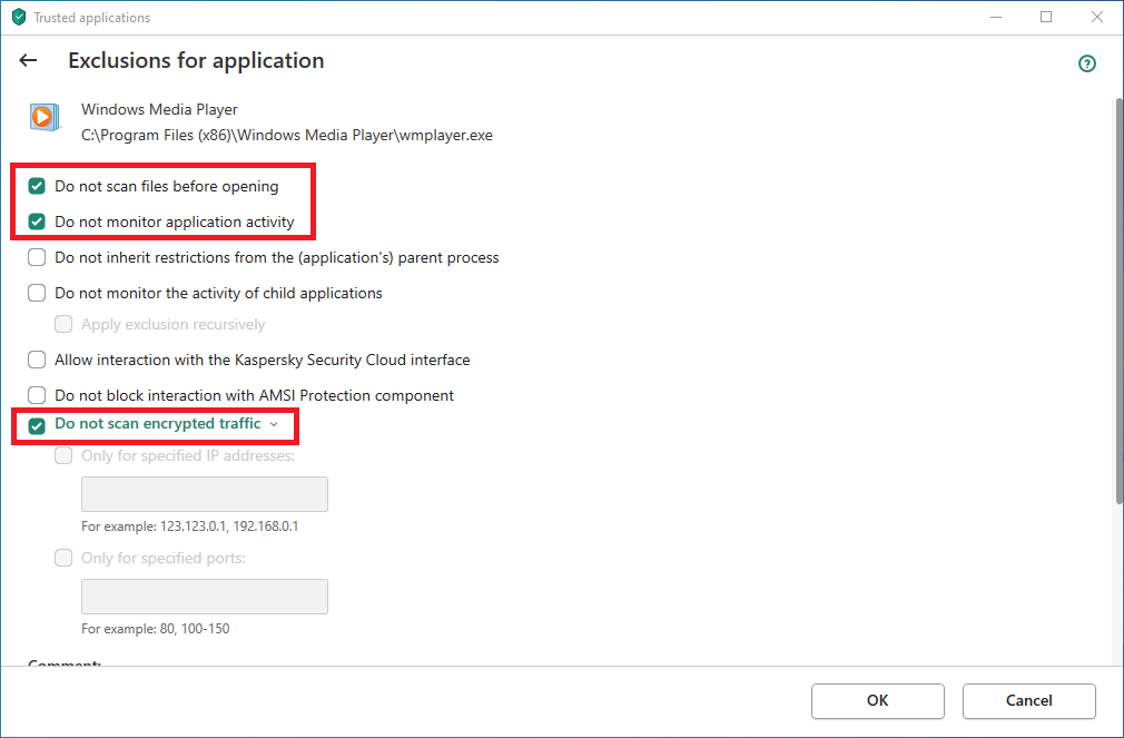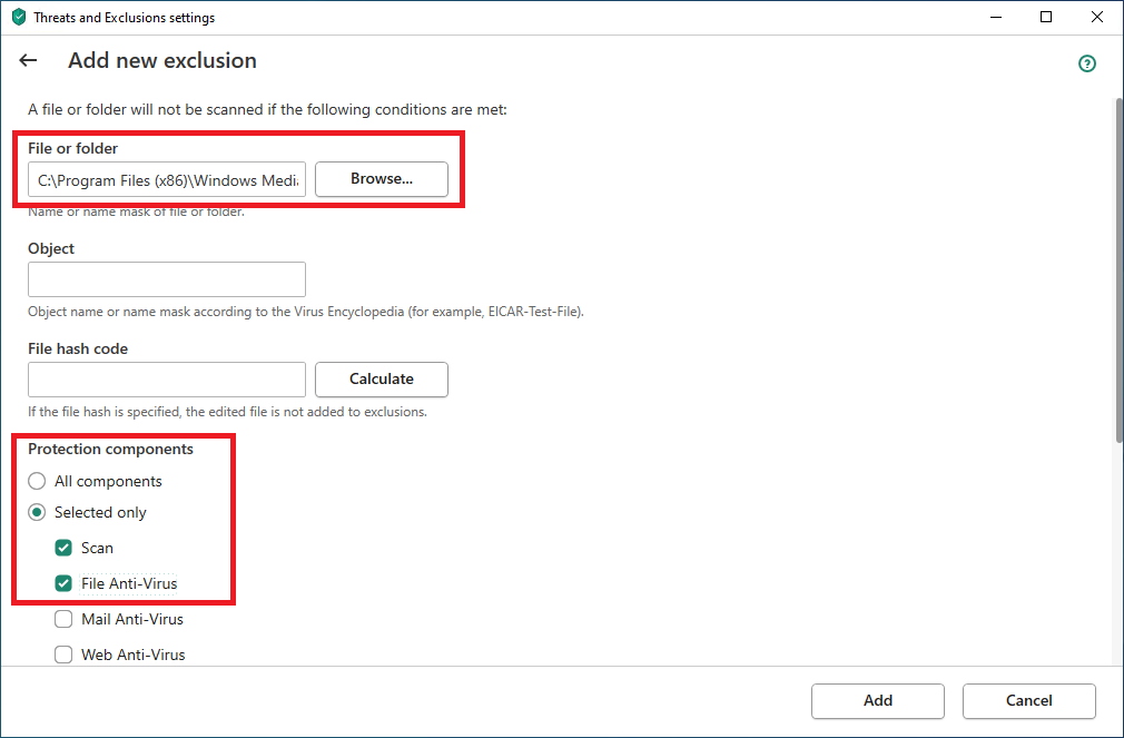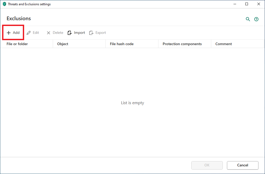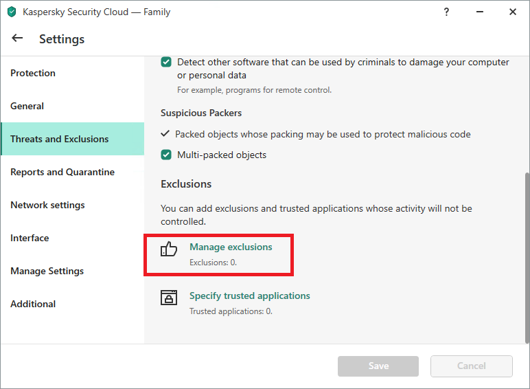Exclusion settings in Kaspersky Internet Security, Kaspersky Total Security, and Kaspersky Security Cloud