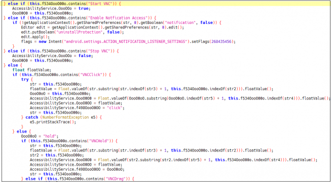 - Monitoring the victim device by leveraging the BIND_ACCESSIBILITY_SERVICE.